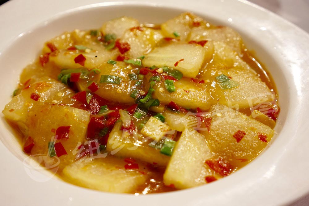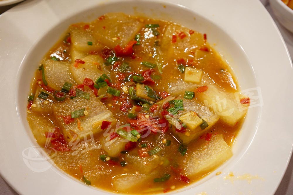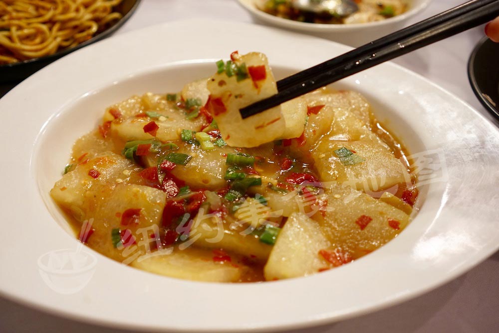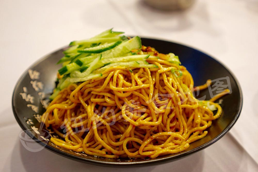又是满登登的一大碗,一众人顿时感慨这老板有点实在。是很清凉爽口的一道凉面,有淡淡的红油香,但又不过于火辣,很适合夏天做开胃菜。但调料稍微过甜,希望大厨能稍微调整一下。