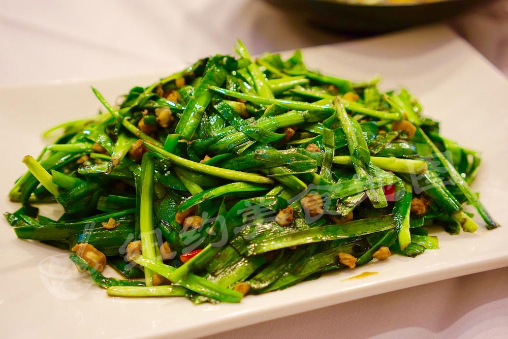 韭菜和海鲜永远是绝配。韭菜很鲜嫩,入口尽是饱满的鲜甜,清香十足;晒干的小蚬子本身咸鲜味儿浓重,与韭菜一起入口,既解了腥咸,又和韭菜的鲜甜相得益彰,又是一道健康清淡的下饭菜。
