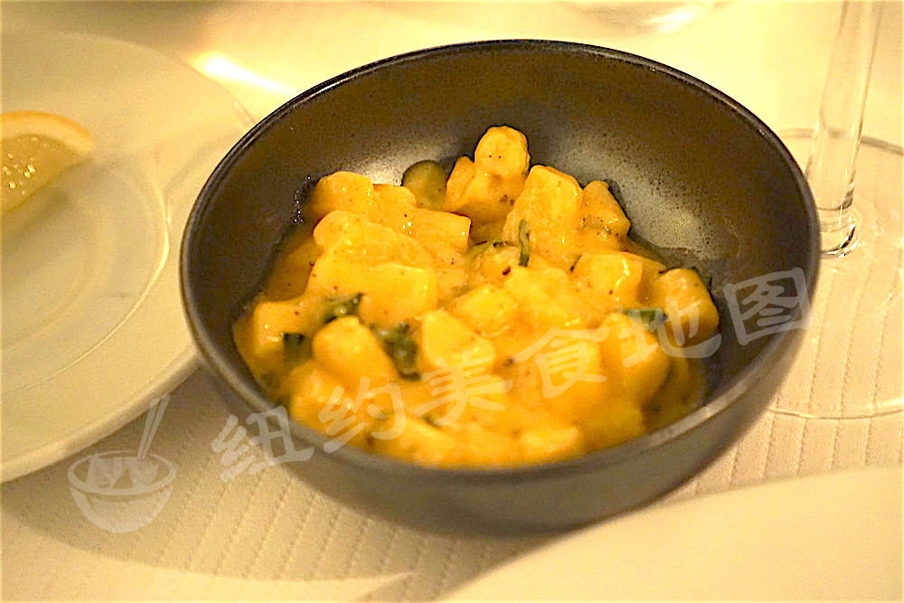 需要另加$50的KOBE,点它纯属是因为好奇。不知道为什么纽约这么多法餐厅,一定要加一些日和元素。Kobe不算赞,火候控制的不错,但香气和油脂完全感受不到,上来的时候也没有足够的热度。Kobe这种食材,一定要在铁板或者烤炉上滋滋啦啦热热烈烈的才能显出它的好,它的妙。这$50的小白鼠体验,大家牢记,别重蹈覆辙。