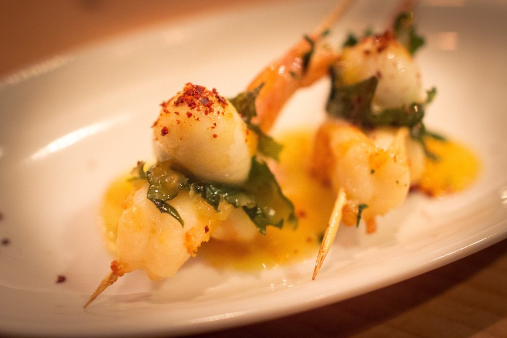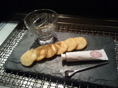 以上这几款是到TAKASHI不得不试的几款前菜,分别是海胆配生牛紫苏、牛脑配薄饼、牛骨髓肉丸和生牛肉塔塔。看着口味略重,但如果你真心喜欢牛肉天然的那种油脂香气,这些前菜混搭在一起会让你有种到天堂的感觉。