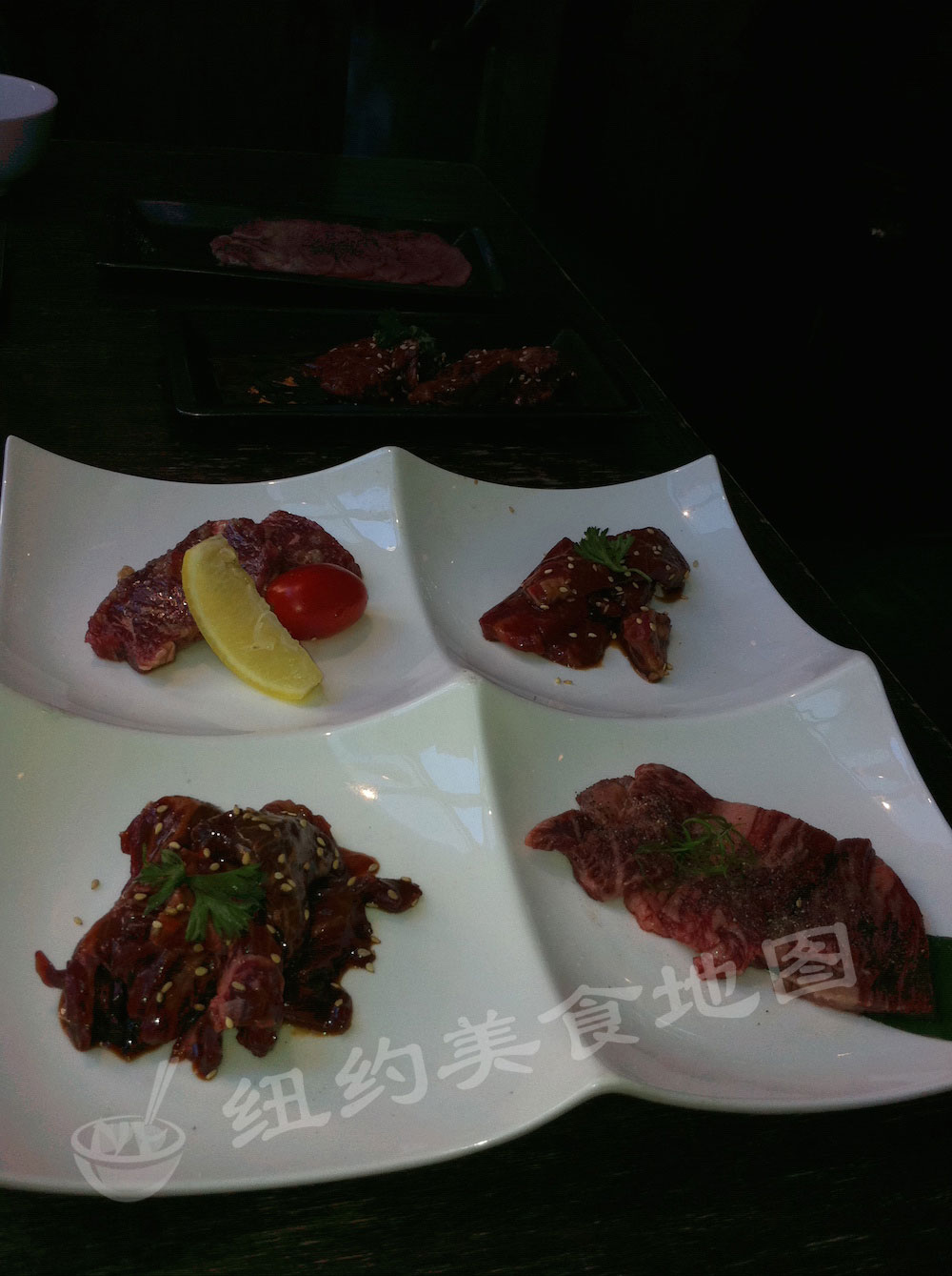 特选四个部位的KOBE SET,WATER还特地交代了每面只需要30S就可以食用,烤老了就可惜啦~KOBE的油脂分布均匀,烤好的肉块在口中融化,油脂和肉香立刻包裹了整个味蕾,大赞!还是比较喜欢KALBI的部分,肉比较厚,但不影响鲜嫩度,很有饱嘴感!大荐!!