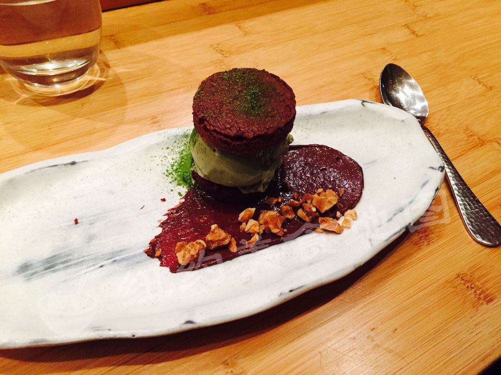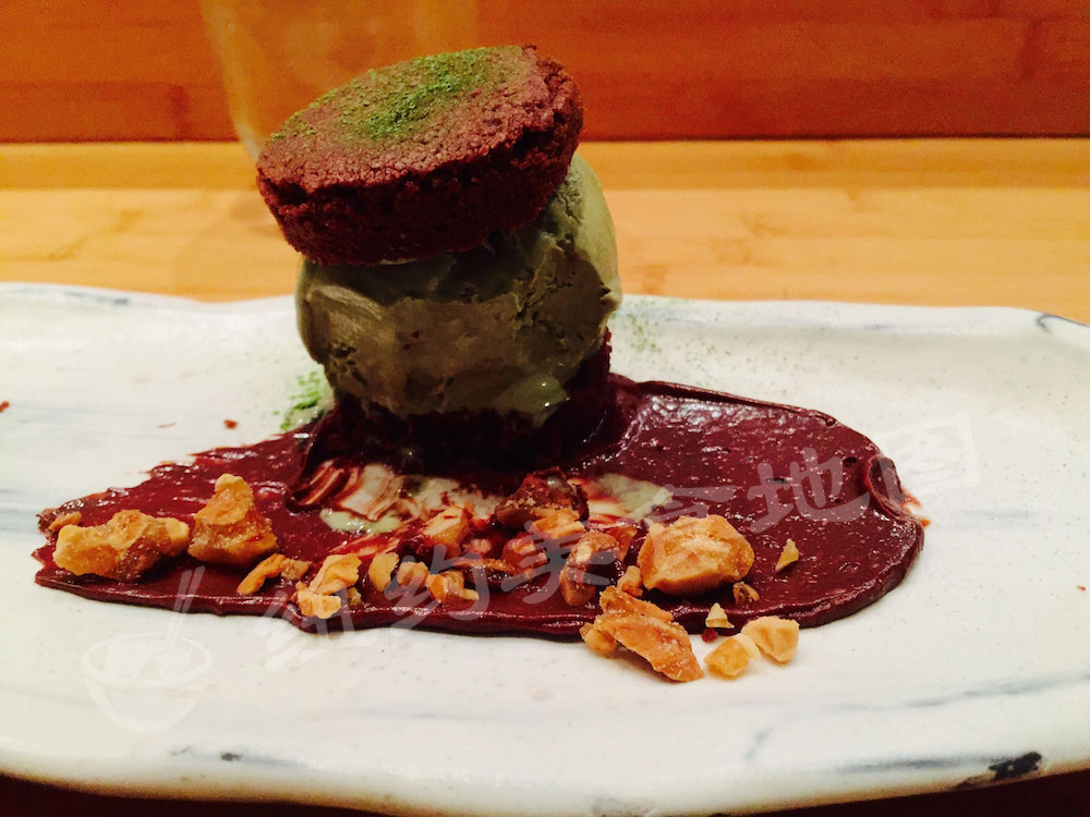 甜点也超级赞!被蘑菇称为大姨妈在也不能错过的绿茶冰淇淋。。。配的现烤的BROWNIE饼干和焦糖盐杏仁出彩,我们因为太撑了所以只点了一份想SHARE,然后小哥竟然送了我们一人一份。。很有前途的小哥,人帅NICE还这么大方!