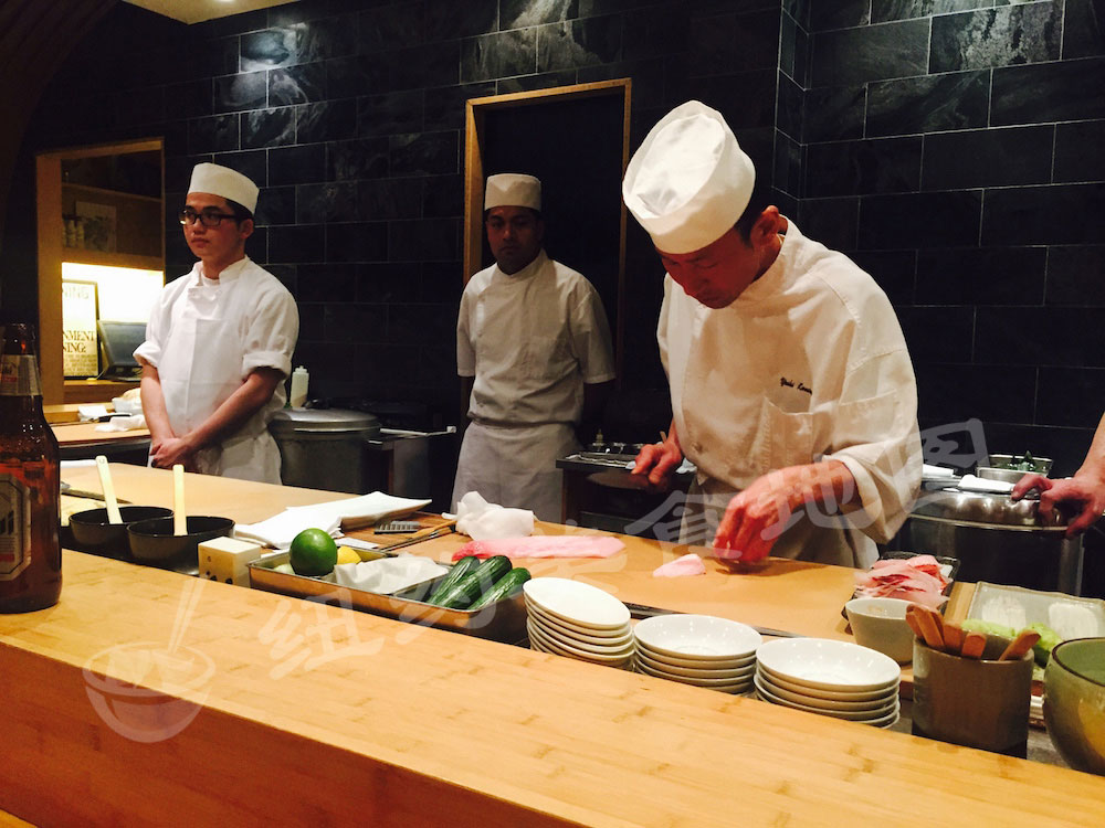 右一就是专攻SASHIMI的CHEF,忘了问名字,人也很好很谦和,好像他比较闲,经常会帮帮YOSHI,两人感情很好很默契的样子
