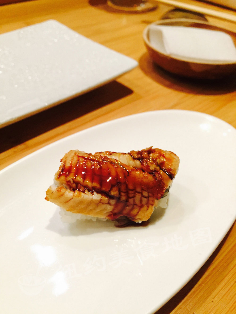烤星鳗!现烤,有一块就是破了一点皮,师傅竟然扔掉了。。然后跟我们道歉说要再等一会儿重新烤。。师傅你手太快了。。。仨吃货都很为那块破掉的鳗鱼惋惜。鳗鱼烤的很扎实,完整度非常好,很妙的是特调的SAUCE一点也不像一般的照烧SAUCE那么甜腻,浓香后味微甜,不会盖掉星鳗本身的甜度,赞!