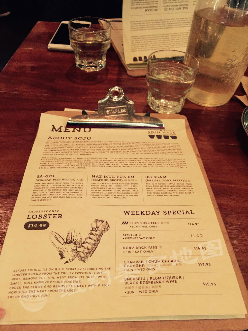 纽约的冬天其实是适合韩餐的季节。再冷的天,来杯烧酒,吃个烤肉或者来个锅,自然就是发自心底踏实的温暖。曼哈顿的小韩国城餐馆林立,各式各样的韩式美食任君选择。这家位于五大道32街的烧酒屋便是新派韩餐的当红代表。餐厅提供各式韩式烧酒,菜单也都是以“下酒菜”为主题成型,店设和经营也走的是韩餐的新派酷炫风格,就连店里的服务生们也个个都是实打实的“小鲜肉”们,外形靓丽,彬彬有礼,食客们真正能宽胃又养眼的好地儿哈!