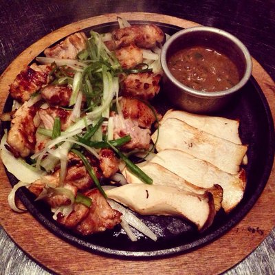 这道一定是所有男士的最爱!五花肉用花刀但不切段,像蜂巢的造型,慢火烤炙,外皮焦香酥脆内里多汁有嚼头,配上豆酱和烤蘑菇,欧巴!烧酒再来两瓶!!