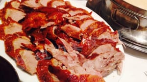 纳尼?!纽约也有地道北京烤鸭可以吃?在老美对中国食物的理解和品味之中,北京烤鸭一直居高位而不下,因此任何大小餐馆都会打着北京烤鸭的旗号卖着 各式各样的“烤鸭”.不幸的是,这些烤鸭大部分虽是烤出来的,但鲜有烤鸭应有的“皮脆肉嫩,腴美香醇”的特点,并且就算有师傅给你片好鸭肉,也往往搭配比 如荷叶馒头等等稀奇古怪的面皮儿裹着海鲜酱或是耗油碟之类的让你吃。。。