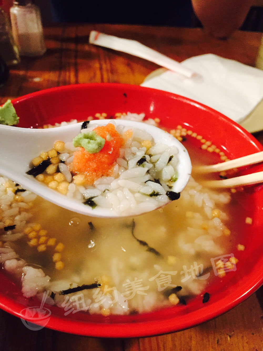 很推荐!喜欢清淡口味和米饭的同学一定会喜欢这款。木鱼汤的调味刚刚好,汤头很清,topping一小坨红艳艳的明太子配上芥末,这样飘雪的冬日来一碗如此暖心暖胃的茶渍饭最是合适不过啦。一边吃一边想起《深夜食堂》里三姐妹每次都点的茶渍饭,她们的幸福感也不过如此吧。